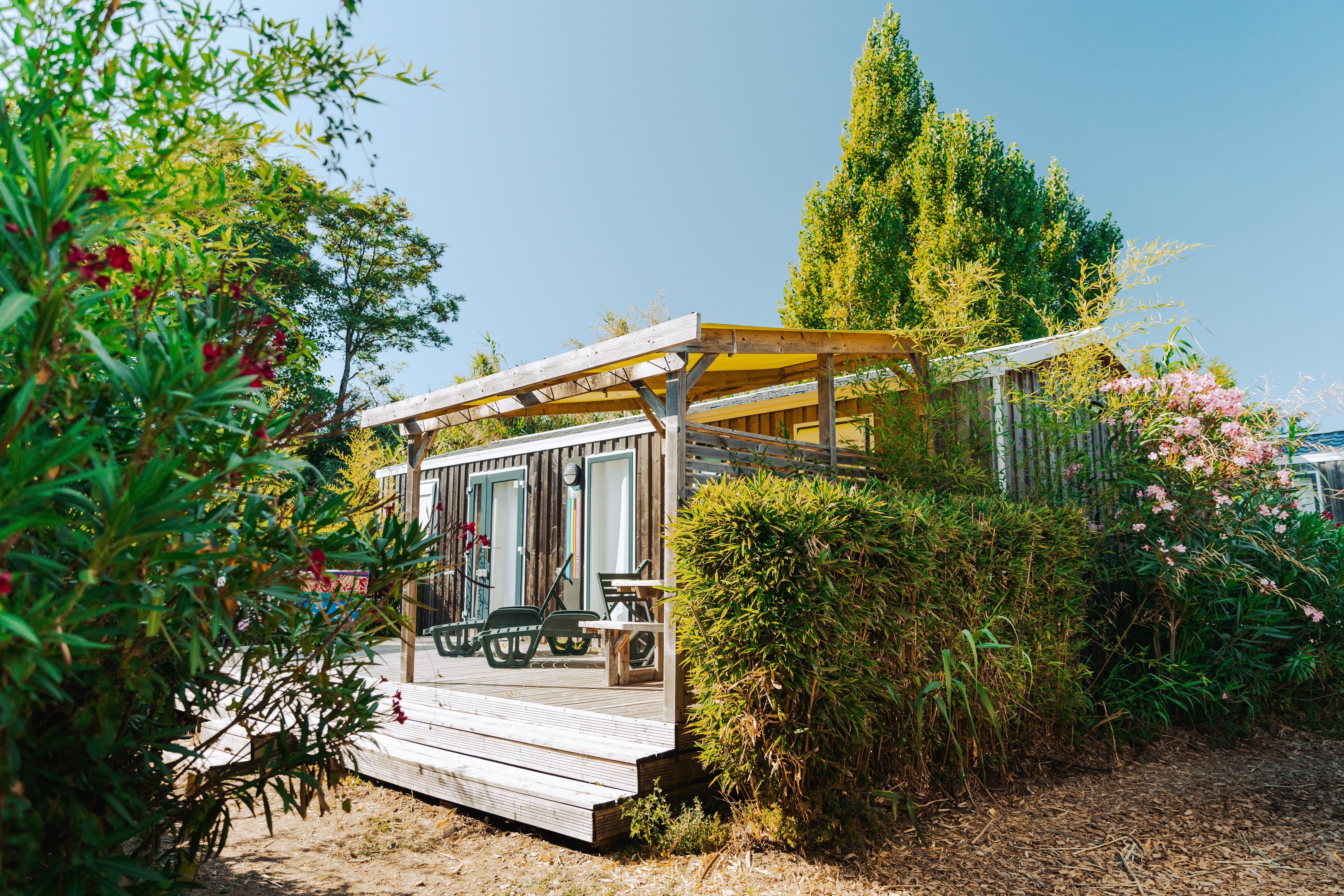 El camping de 5 estrellas, una verdadera joya de la naturaleza situado a tan solo unos pocos pasos de la playa, se funde con su maravilloso paisaje típico de la Isla de Ré. Terraza privada, piscina en las cercanías e instalaciones de alta gama: aquí, todo está pensado para que tu familia disfrute de unos momentos inolvidables. ¿Buscas una escapada de lujo a 250 metros del océano? Este rincón del paraíso te espera, listo para dar la bienvenida a tu próxima aventura en la Isla de Ré.