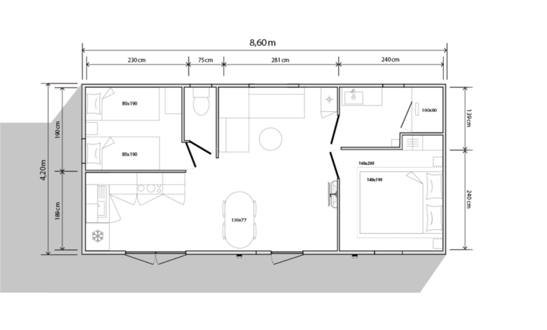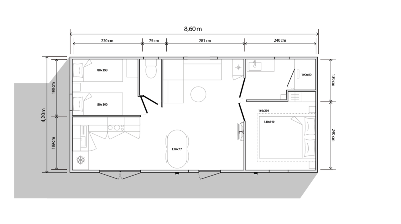 - 2 Cama doble (80x200) (se proporciona el edredón y las almohadas)