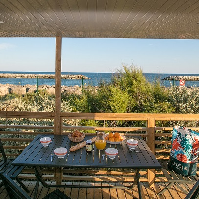 ¿Buscas un alojamiento a orillas del mar para tus vacaciones en Camarga? Deja las maletas en los mobil-homes nuevos y acogedores de alta gama Sunêlia Prestige «Vue Infinie». Están ubicados a unos metros del Mediterráneo para que disfrutes de las vistas al mar desde tu terraza con sombra.