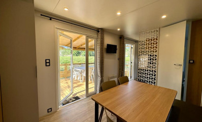 Disponemos de casas móviles Louisiane climatizadas de 37 m² del año 2023, de última generación, muy cómodas y bien equipadas. También podrá disfrutar de una amplia terraza cubierta con mobiliario de jardín para aprovechar al máximo el exterior.