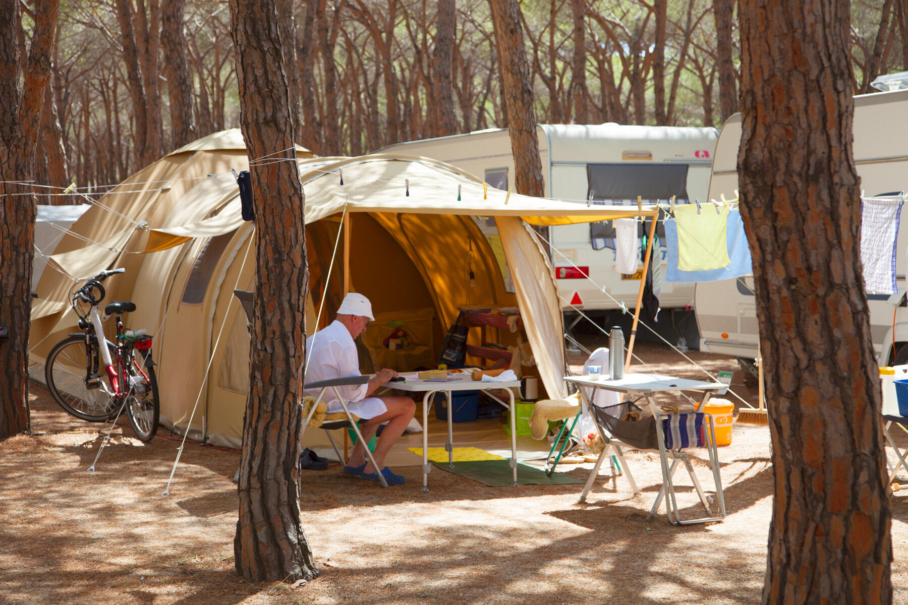 The “PREMIUM” type pitches are mainly located near the sea, some under the sun, some in the shade of the pine forest. The price includes parking space, mobile home (these two items are unified if there's a camper), electric power.