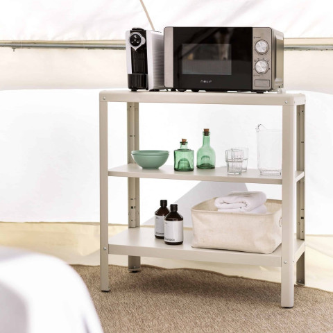 Bell tent et Cottage Family innovent dans la gamme d’hébergements légers, dans un style safari. Installés sur une plateforme de bois faisant également office de terrasse, ces dômes en toile tendues accueillent 2 à 5 personnes. Particulièrement lumineux, en surplomb, ils s’intègrent parfaitement à l’environnement. Cadre serein, chlorophyllé, aux légers parfums de bois chauffé par le soleil, avec pour bande sonore le bruit du vent dans les feuilles, voilà le tableau du camping wecamp Pirineos. Mais surtout, une vraie literie vous attend, ainsi que le confort de l’électroménager (réfrigérateur et micro-ondes) dans tous nos hébergements.