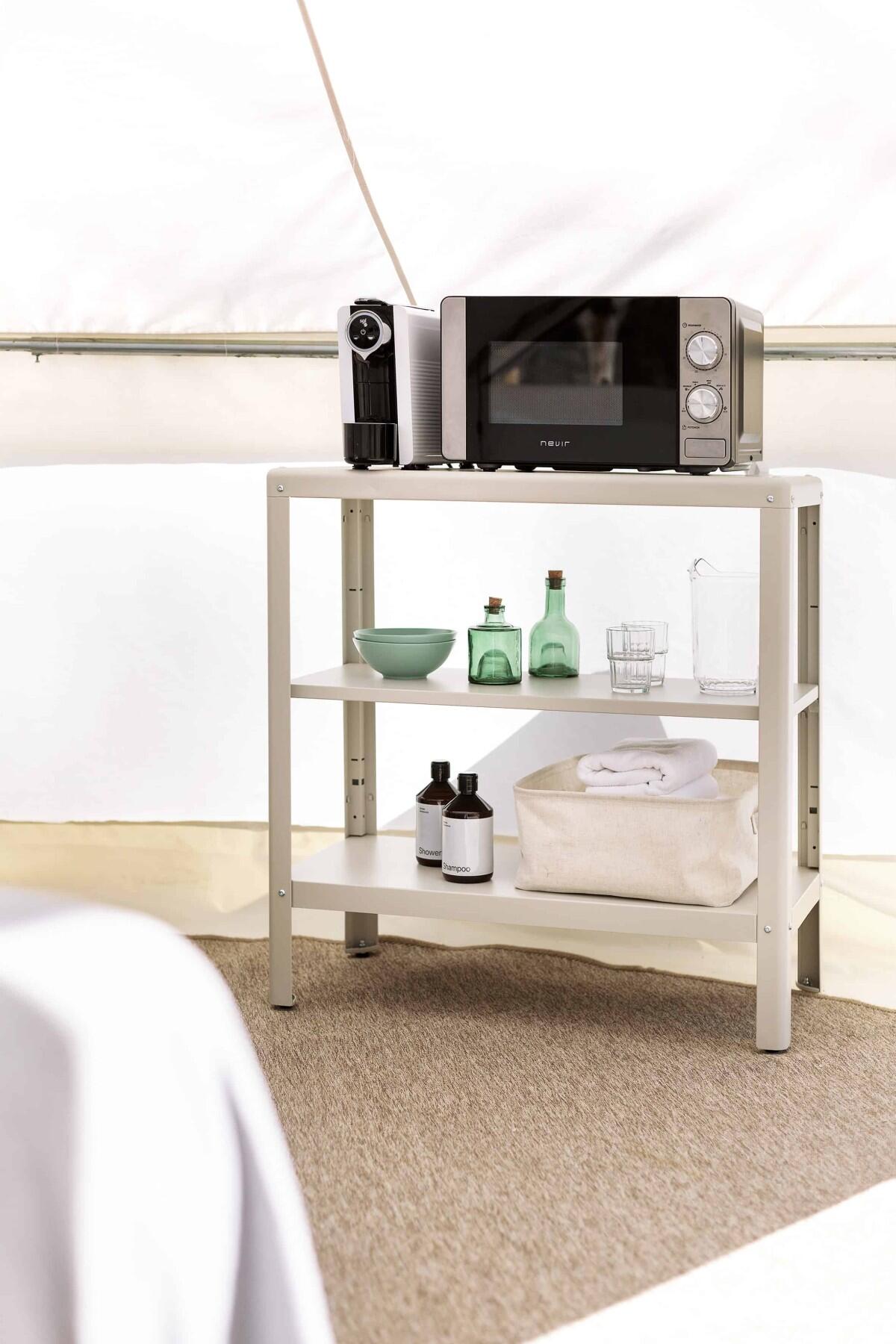 Le Basic Family Bungalow dispose de deux chambres à coucher, l'une avec un lit double et l'autre avec deux lits simples. Tous nos bungalows disposent d'une terrasse avec un porche meublé et ombragé. Ils sont équipés d'une cuisine avec micro-ondes, réfrigérateur, ustensiles de cuisine et couverts. Ils disposent d'une salle de bain avec douche et WC. Nous vous rappelons que les serviettes et les draps sont inclus.