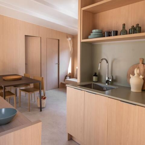 Un chemin de sable vous mène tranquillement jusqu’à votre home sweet home. Dès le premier coup d’œil, vous comprendrez que dans ce bout de Catalogne, la vie se passe dehors. Les grandes ouvertures des mobil-homes et les lignes épurées du mobilier concentrent sur l’essentiel : la nature.