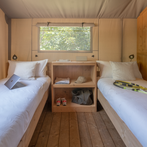 Que vous testiez un habitat léger comme la Bell Tent et son lit douillet, ou un mobil-home Family + pensé pour les tribus, vous adorerez cette impression d’être en phase avec l’environnement depuis n’importe quelle pièce. Cuisine et salle de bain équipées, terrasse cosy, chambre parentale, dressing pour certains hébergements, les équipements sont au rendez-vous.