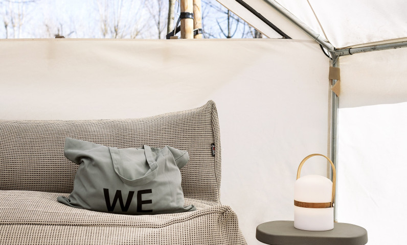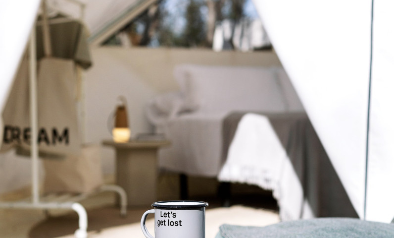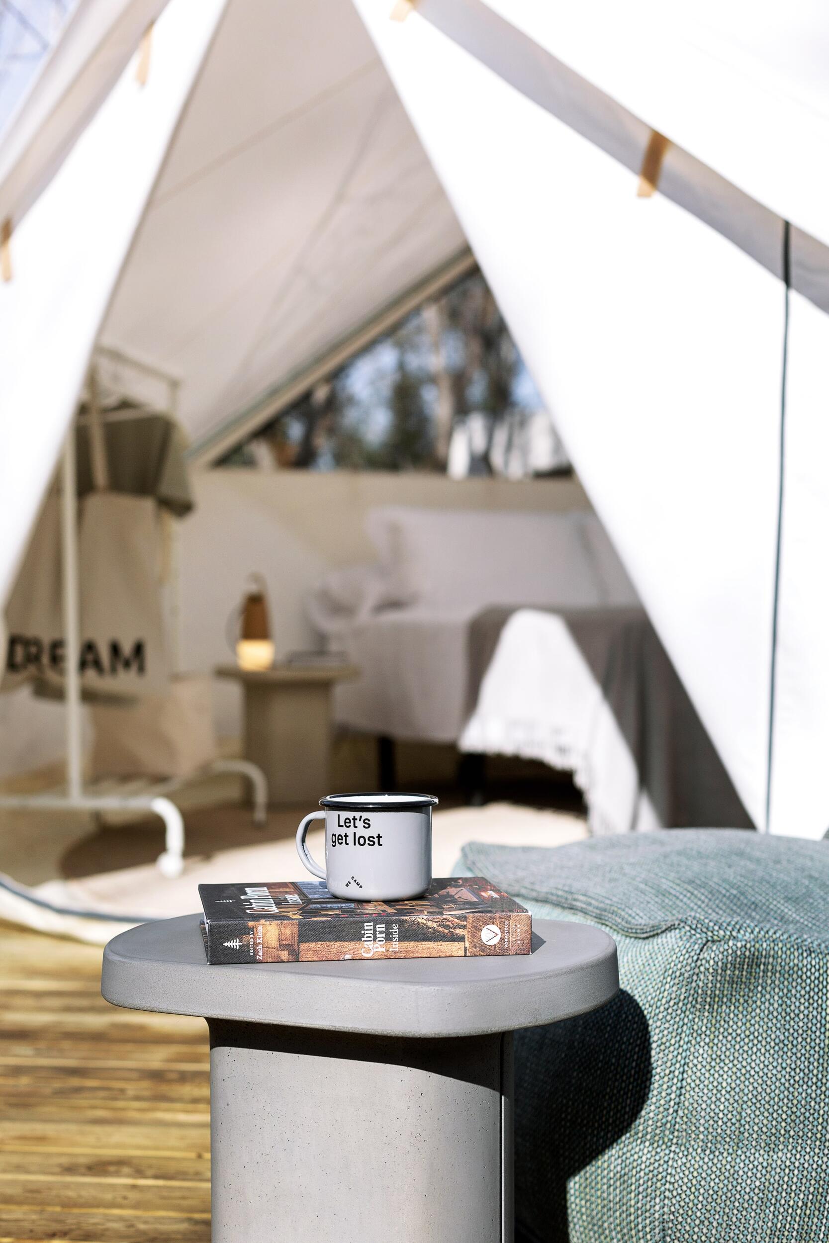 Notre tente Bell est idéale pour les couples qui recherchent quelque chose de différent en pleine nature au camping, avec une touche de luxe. Elle n'a pas de cuisine ni de salle de bain privée, mais les toilettes publiques se trouvent à quelques mètres de la tente. Le plus intéressant ? Elle dispose d'un lit double confortable, d'un mini-réfrigérateur, d'ustensiles de cuisine et d'un micro-ondes.
