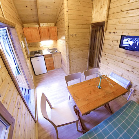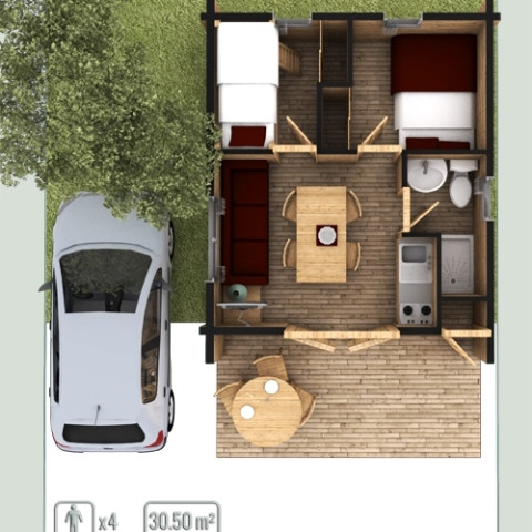 Et pourquoi ne pas essayer quelque chose d’un peu différent ? Nos cabanes en bois de 15 m² ont ce petit truc en plus qui rend le séjour inoubliable. Une chambre avec un lit double, un canapé-lit, une petite cuisine équipée... Vous avez tout ce qu’il faut pour un moment chaleureux.