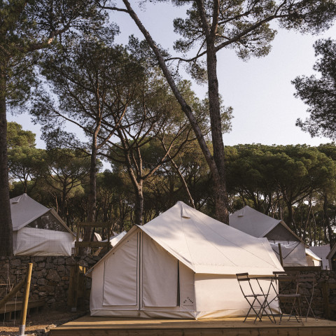 Chaque mobil-home dispose d'une chambre individuelle ouverte, équipée d'un lit double confortable. En outre, vous pouvez profiter d'une terrasse confortable avec une véranda meublée, idéale pour se détendre à l'ombre.