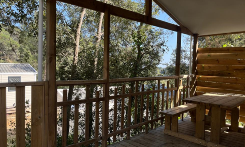 Pas de place de parking à côté de l'hébergement, accès à pied par les escaliers, 1 voiture gratuite par logement, parking à proximité dans le camping.