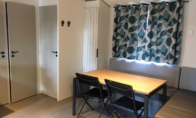 Pas de place de parking à côté de l'hébergement, accès à pied par les escaliers, 1 voiture gratuite par logement, parking à proximité dans le camping.