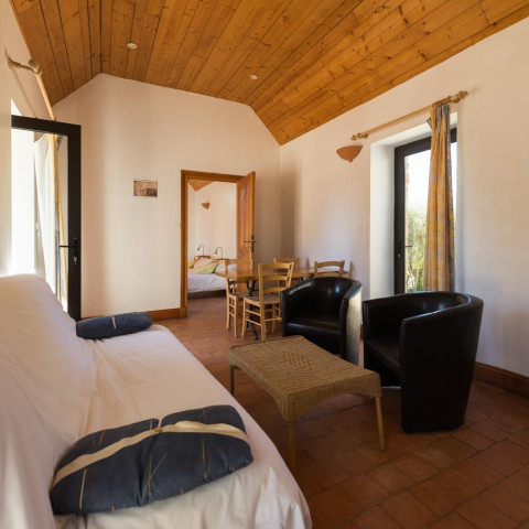 Situé à côté de la piscine, prenez place sur l’espace calfeutré de la grande terrasse et laissez-vous aller dans cette ambiance estivale tout en profitant de la vue sur le parc aquatique.
