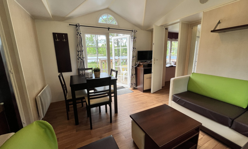 Installez-vous dans ce mobil‑home Confort idéalement situé face à l’étang, un véritable refuge pour profiter pleinement de la nature environnante. Conçu pour accueillir jusqu’à 6 personnes, il offre un cadre paisible et ressourçant, parfait pour un séjour en famille ou entre amis.