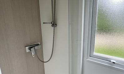 À l’intérieur, vous profitez d’un espace lumineux où des matériaux élégants et chaleureux créent une atmosphère apaisante. La pièce de vie rassemble une cuisine ouverte sur un salon confortable, une salle de douche pratique, ainsi que deux chambres pensées pour garantir un sommeil réparateur après vos journées d’activités.
