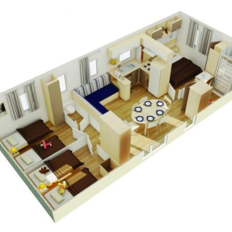 Posez vos valises dans un de nos mobil-homes ! Ouvert toute l'année (sauf du 1er au 15 janvier), notre camping Les Nids du Lac dispose de 30 mobil-homes pour les familles.