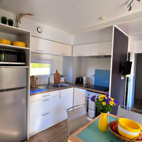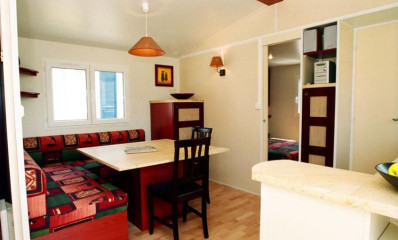 Lits faits à votre arrivée dans l'hébergement, ménage de fin de séjour pris en charge par le camping, linge de maison fourni, location d'équipements...