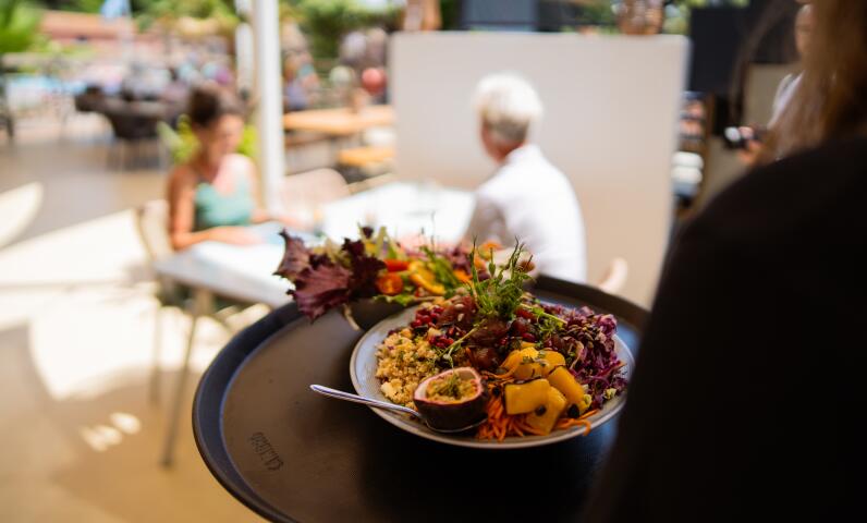 D'avril à septembre, découvrez quotidiennement la cuisine entre terre et mer du Jardin des Sablons, mais aussi les plats frais et raffinés proposés au restaurant Le Carré Bleu. Savourez votre repas cuisiné maison sur la terrasse ombragée ou au frais dans la salle climatisée. À la carte, vous trouverez des spécialités méditerranéennes mais aussi du Languedoc.