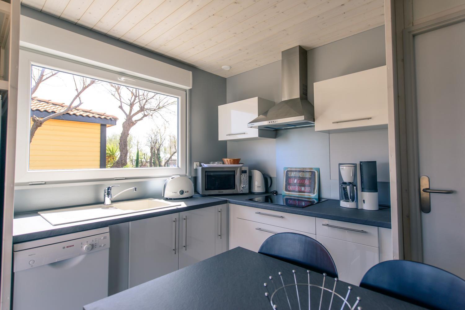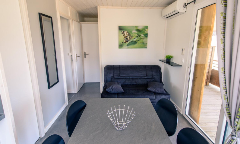 Lits faits à votre arrivée dans l'hébergement, ménage de fin de séjour pris en charge par le camping, linge de maison fourni, location d'équipements...