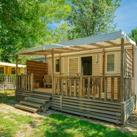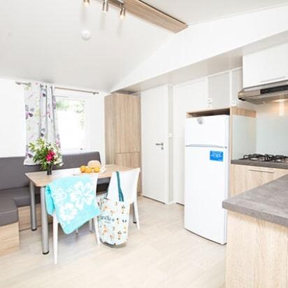 - Dans la gamme Confort, profitez des mobil-homes offrant 25 à 32m² de surface. Abritant 2 à 3 chambres, ils peuvent accueillir 2 à 7 vacanciers. Meublés et équipés, ils vous proposent un espace de vie confortable ainsi que leur terrasse couverte !