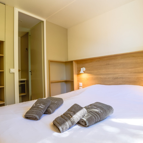 - Les locatifs de la gamme Luxe, sont munis de 2 à 3 chambres et 2 salles de bains. Proposant le même confort que les gammes précédentes, ces mobil-homes disposent en plus de la Wifi, de prestations hôtelières de standing (lits faits à l’arrivée, ménage de fin de séjour et linge de maison fourni).