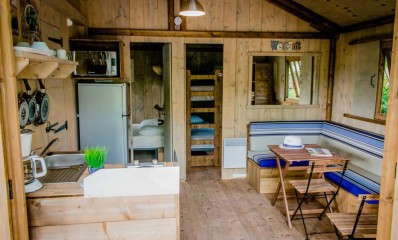 Lits faits à votre arrivée dans l'hébergement, ménage de fin de séjour pris en charge par le camping, linge de maison fourni, location d'équipements...