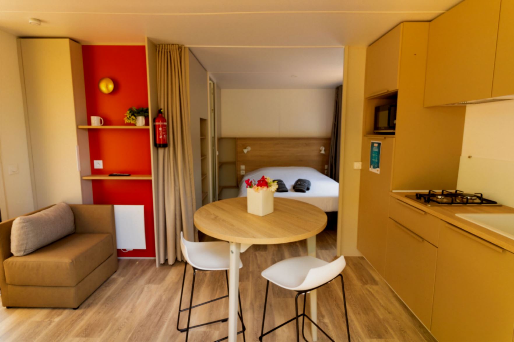 Lits faits à votre arrivée dans l'hébergement, ménage de fin de séjour pris en charge par le camping, linge de maison fourni, location d'équipements...