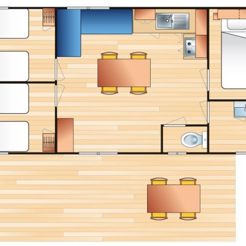 Surface : 60 m² (deux mobil-homes agencés en une suite)