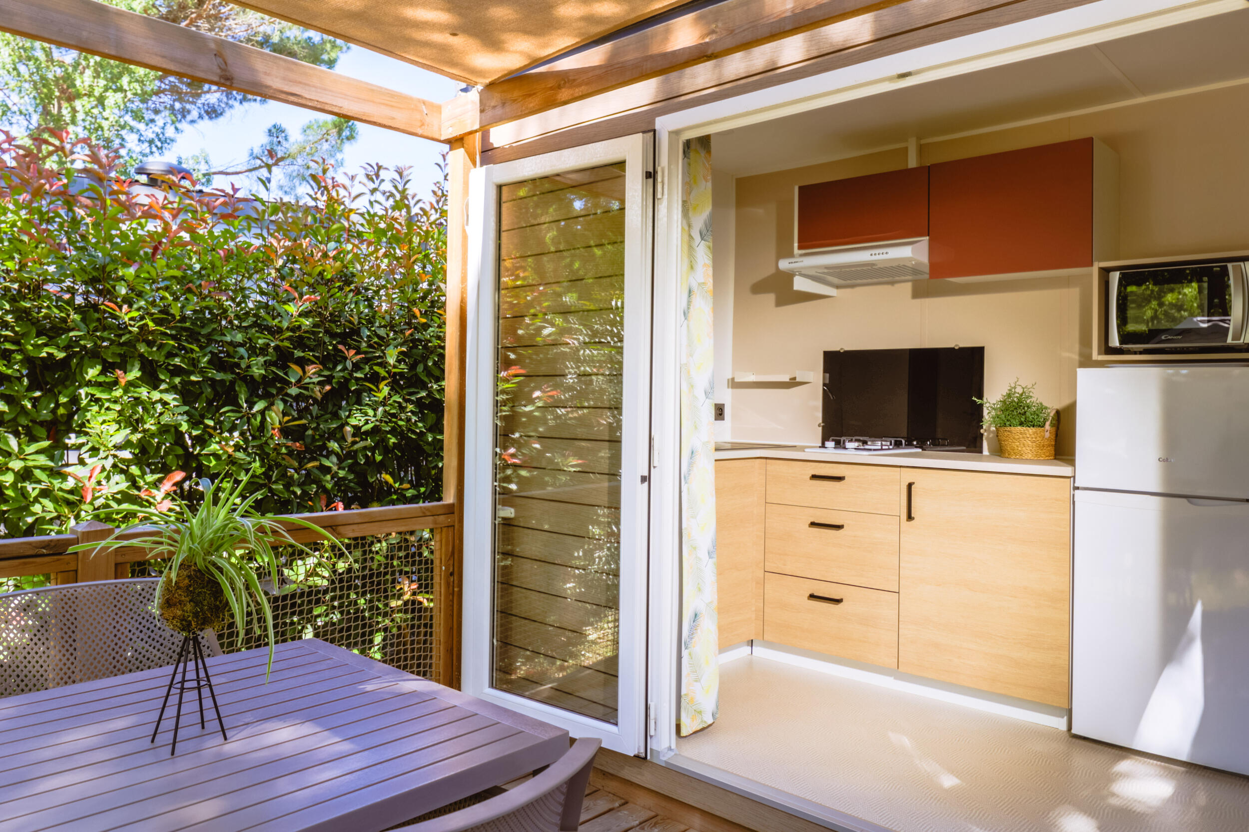 Lits faits à votre arrivée dans l'hébergement, ménage de fin de séjour pris en charge par le camping, linge de maison fourni, location d'équipements...