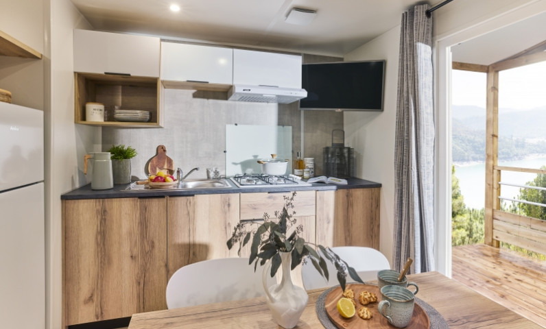 Lits faits à votre arrivée dans l'hébergement, ménage de fin de séjour pris en charge par le camping, linge de maison fourni, location d'équipements...