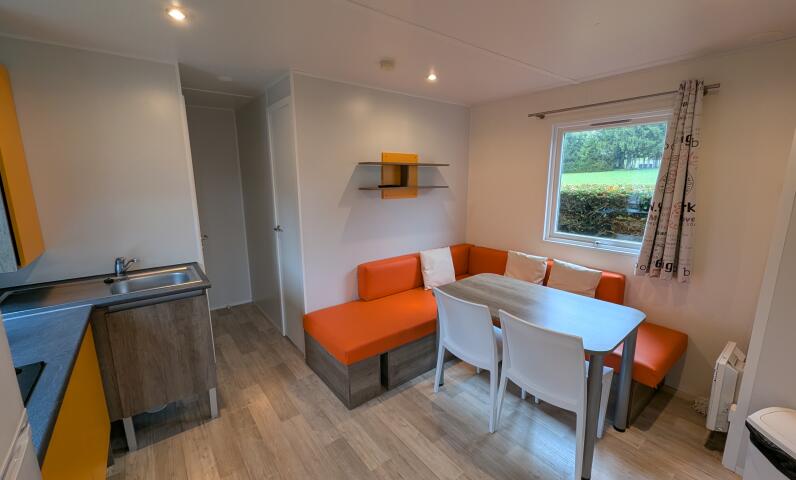 Lits faits à votre arrivée dans l'hébergement, ménage de fin de séjour pris en charge par le camping, linge de maison fourni, location d'équipements...