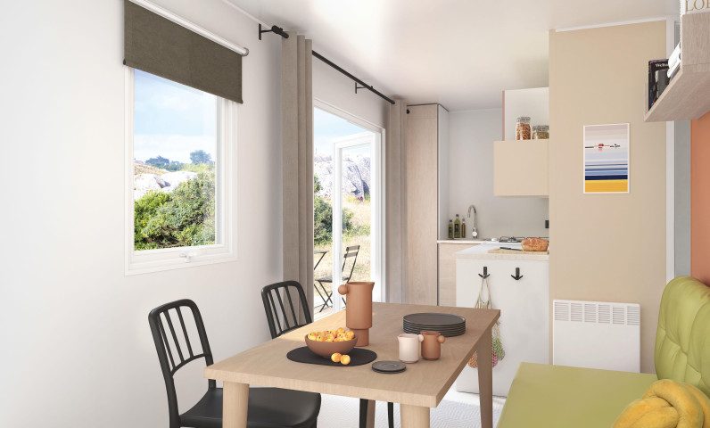 Lits faits à votre arrivée dans l'hébergement, ménage de fin de séjour pris en charge par le camping, linge de maison fourni, location d'équipements...
