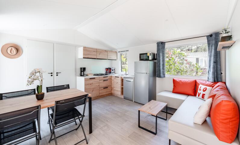 Mobil-homes, chalets et hébergements tout équipés, adaptés aux familles et aux séjours confort.