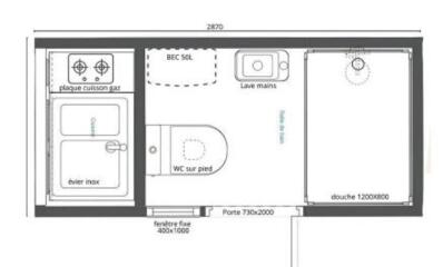 et à l’extérieur l’espace cuisine avec évier, plaque de cuisson et frigo. Ce module ferme à clefs, vous laissant la possibilité d’y laisser vos affaires personnelles.