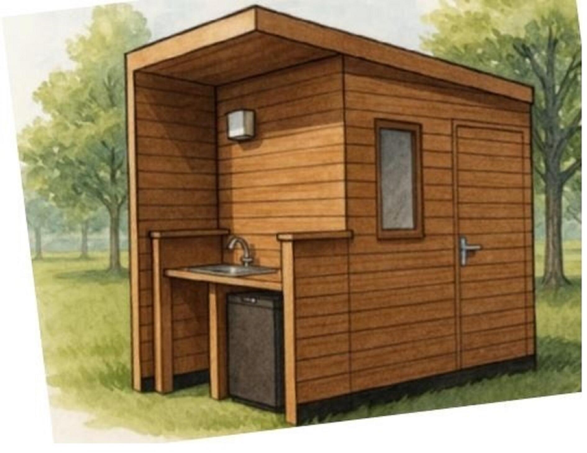 Vous aurez à votre disponibilité sur votre emplacement un sanitaire privatif composé de deux espaces : à l’intérieur l’espace salle d’eau chauffée avec douche, lavabo et WC ;