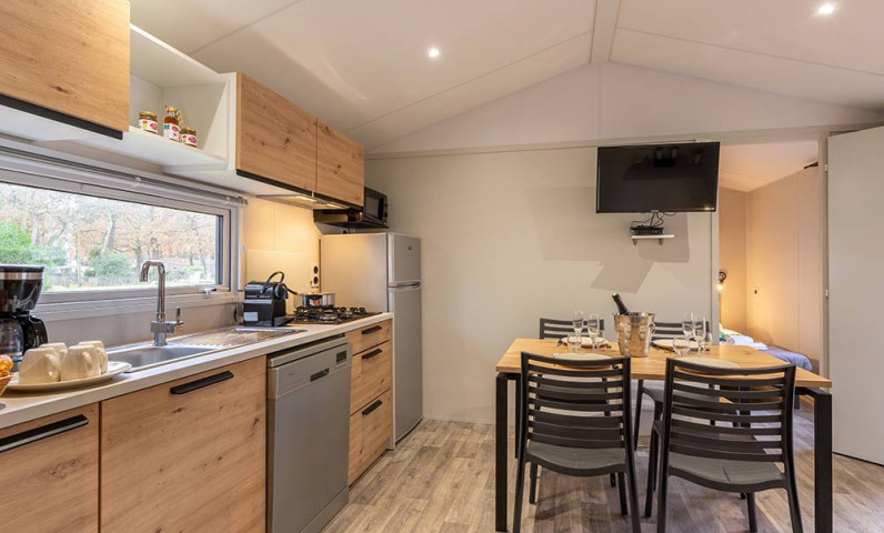 Lits faits à votre arrivée dans l'hébergement, ménage de fin de séjour pris en charge par le camping, linge de maison fourni, location d'équipements...
