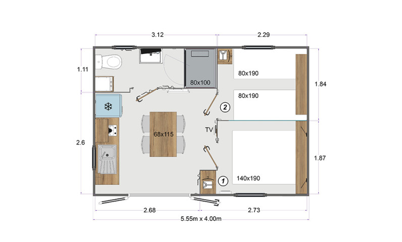 - Lit 2 places (140x190) (couette et oreillers fournis)