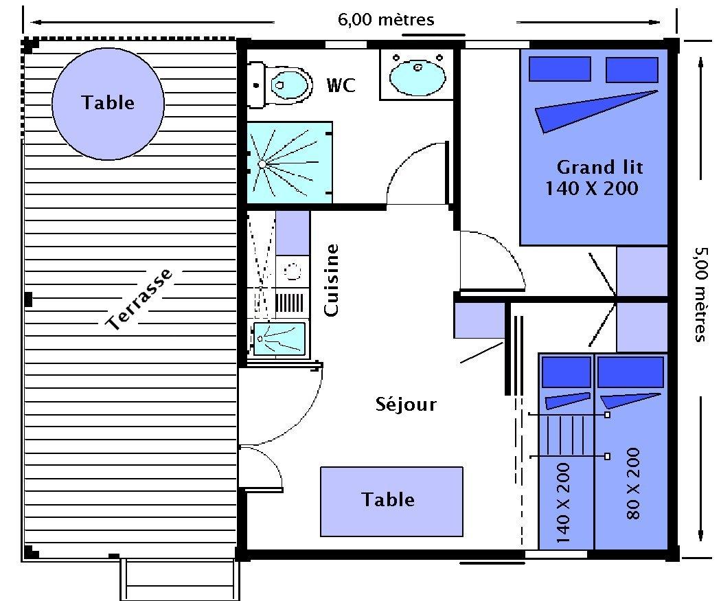 - Lit 2 places (140x190) (couette et oreillers fournis)