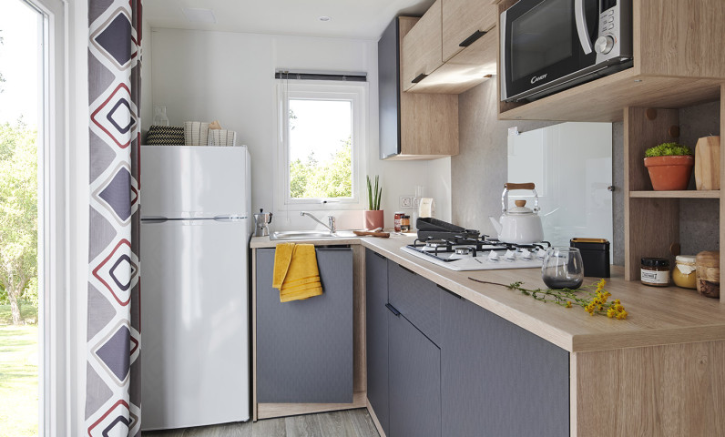 Lits faits à votre arrivée dans l'hébergement, ménage de fin de séjour pris en charge par le camping, linge de maison fourni, location d'équipements...