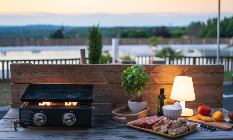 Dans le restaurant de ce camping à taille humaine, découvrez quelques spécialités traditionnelles et plats à emporter comme l’assiette lotoise, la salade périgourdine ou le magret de canard.