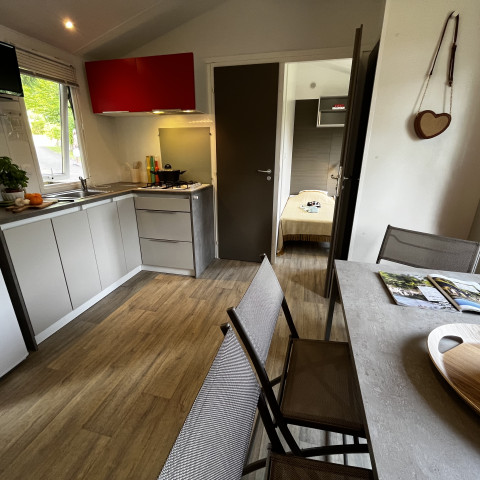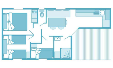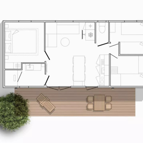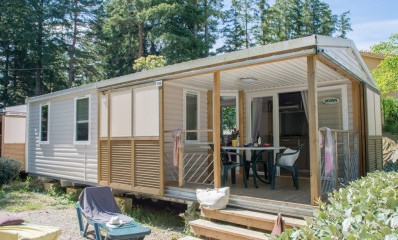 Mobil-home spacieux et climatisé avec terrasse, parfait pour les familles nombreuses ou les séjours entre amis jusqu’à 6 personnes.