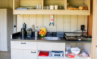 Découvrez notre nouveauté : la tente Lodge Prestige Plus entièrement équipée. Avec une salle de bain complète, un cadre en bois robuste, et une capacité d’accueil jusqu’à cinq personnes, cette tente spacieuse de 25 m² offre tout le confort nécessaire. Elle comprend des chambres séparées par un mur en bois avec des lits confortables, des meubles, une cuisine complète, et une belle terrasse. Le toit élevé et la façade entièrement ouvrante permettent de profiter pleinement du plein air. Tout ce qu'il vous faut pour une expérience inoubliable !