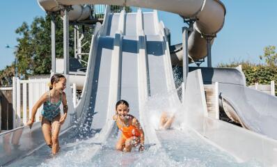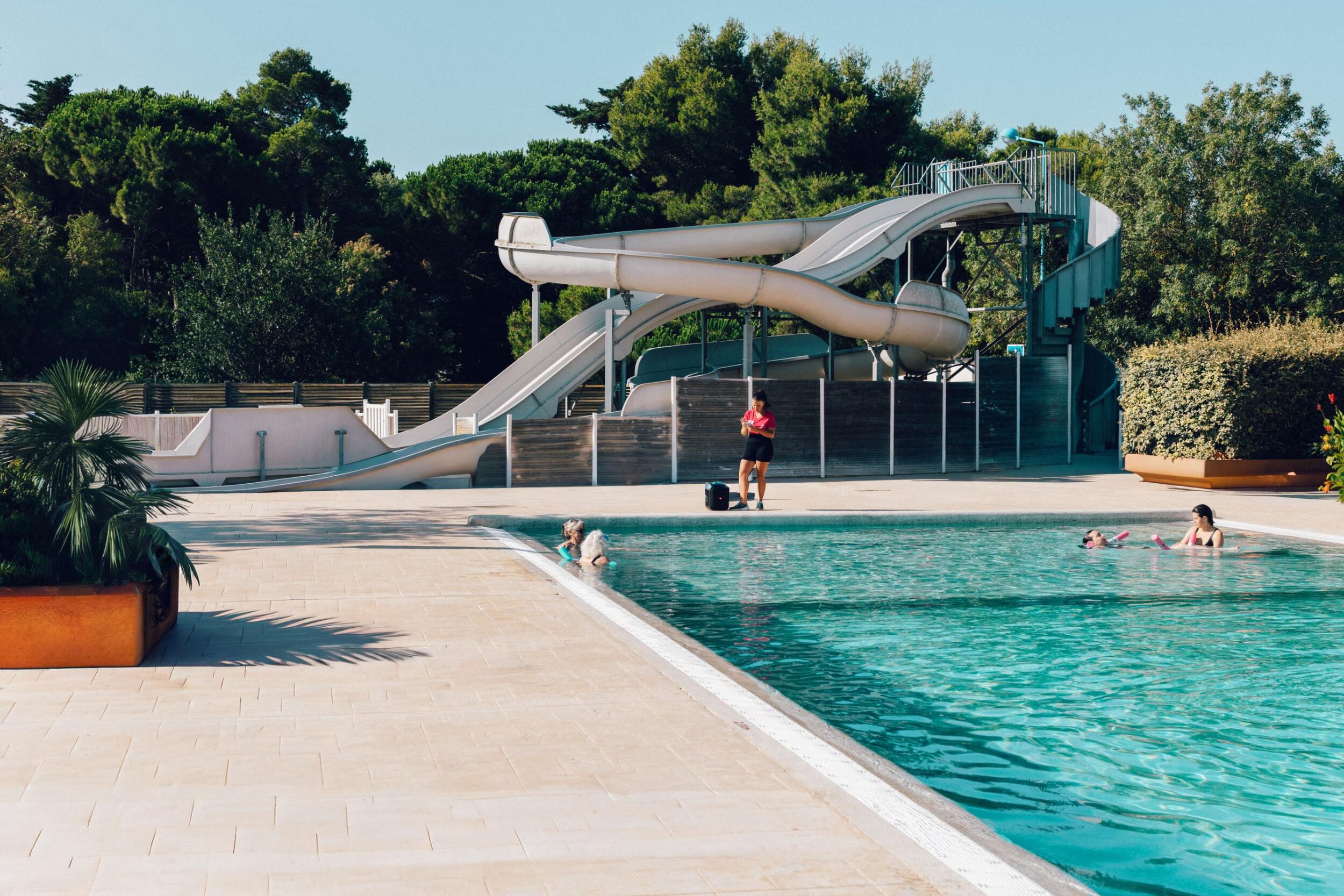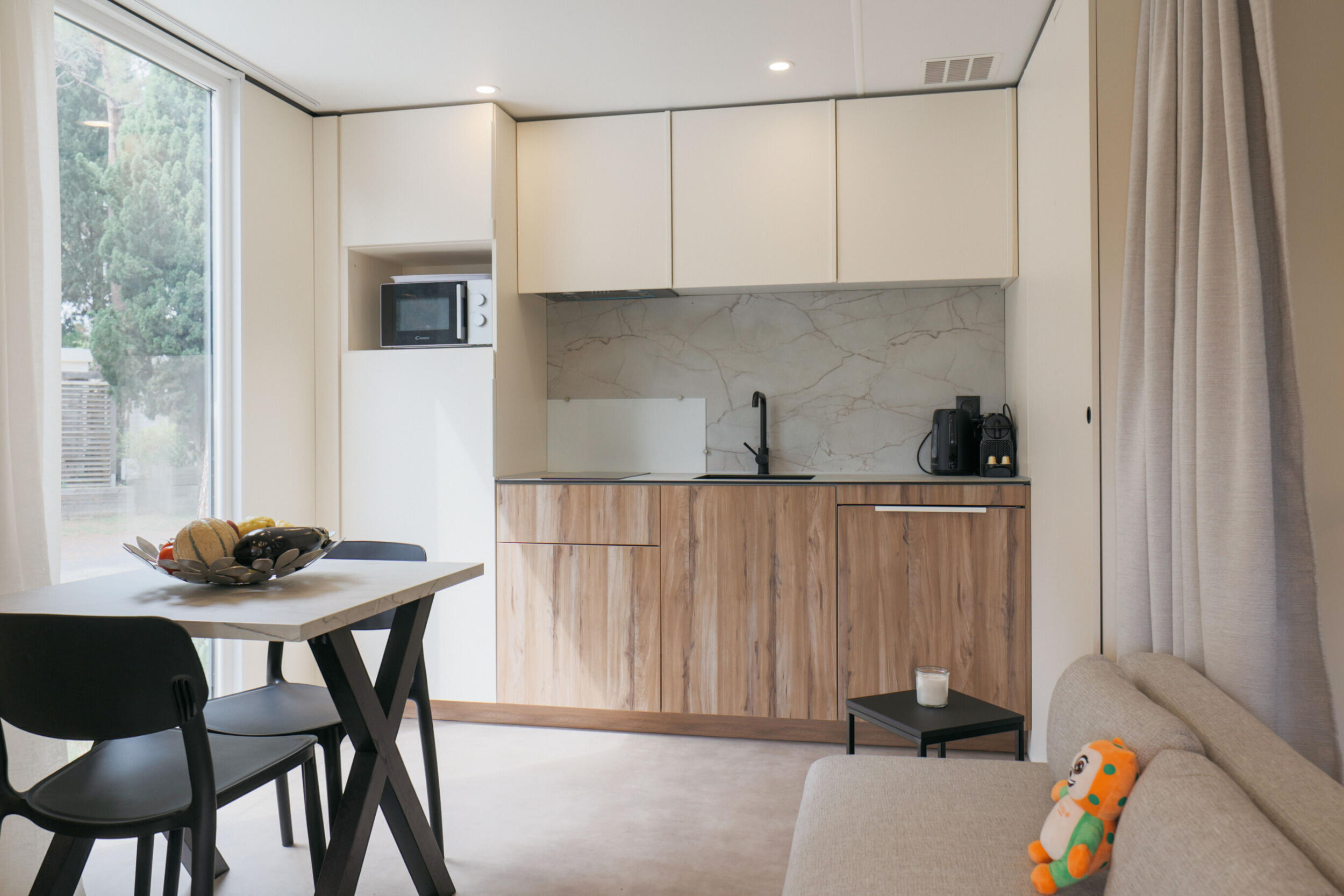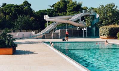 Cette catégorie d’emplacement dispose de son sanitaire individuel, comprenant douche, lavabo, évier et WC privatifs, ainsi qu’un réfrigérateur top intégré. Plus besoin de partager : profitez de votre propre espace, toujours propre et accessible à tout moment, pour un séjour en toute tranquillité.