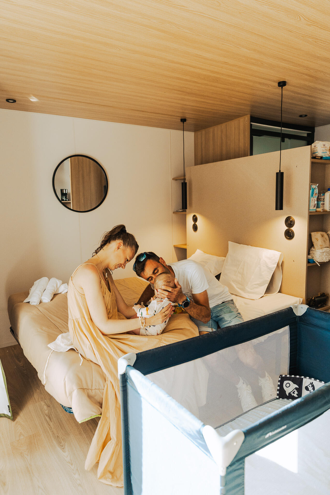 Logement compris pour 2 personnes + 1 enfant dans un lit parapluie.
