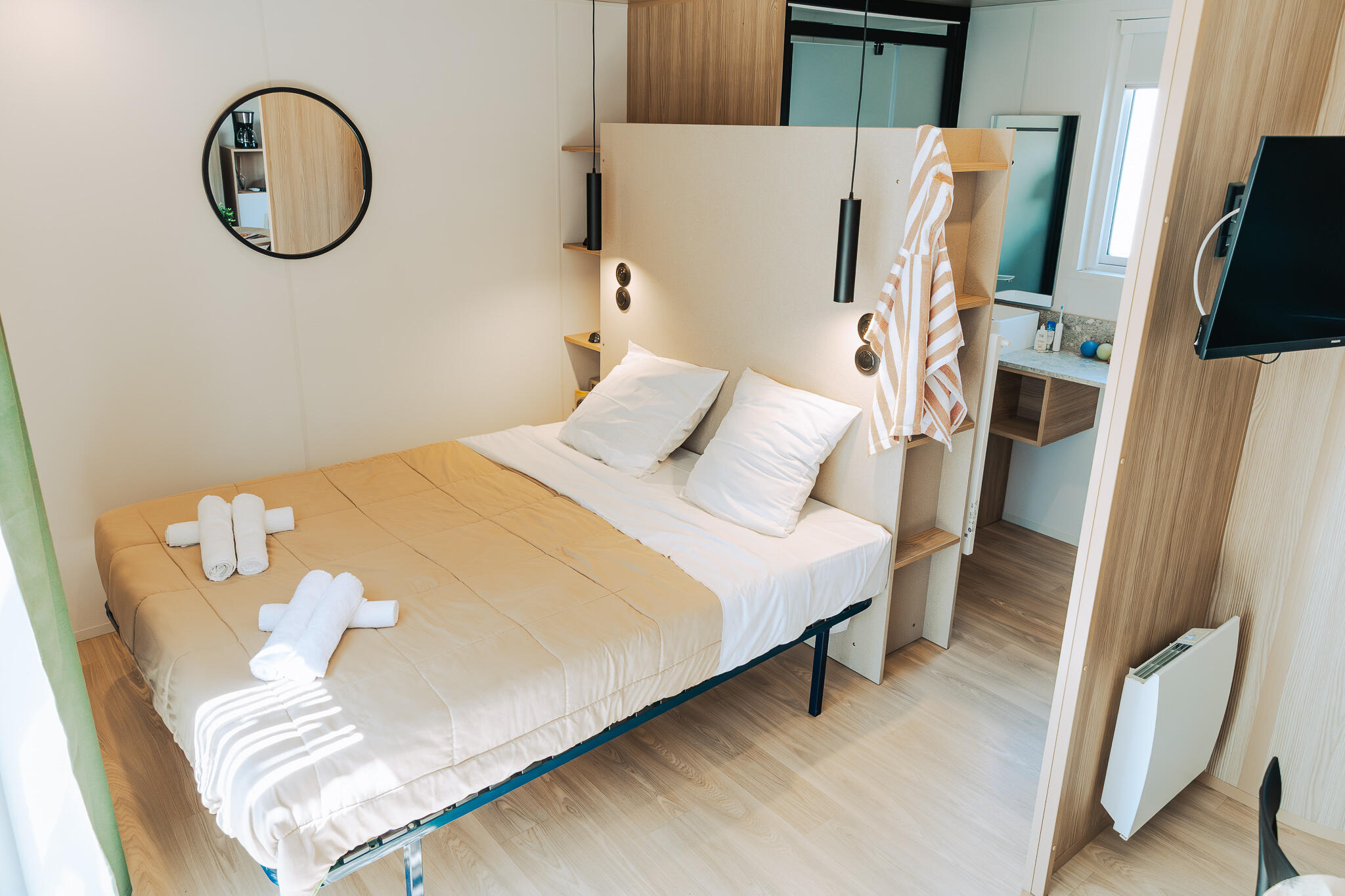 - Lit 2 places (160x200) (couette et oreillers fournis)
