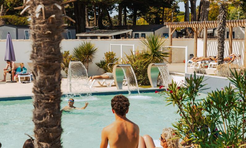 Plongez dans un univers de détente au parc aquatique du camping Les Grenettes, sur l'Île de Ré ! Avec ses 1043 m² d'espaces aquatiques, ses bains à remous et son espace Zen ; c’est l’endroit parfait pour des moments de relaxation inoubliables, entouré par la nature.