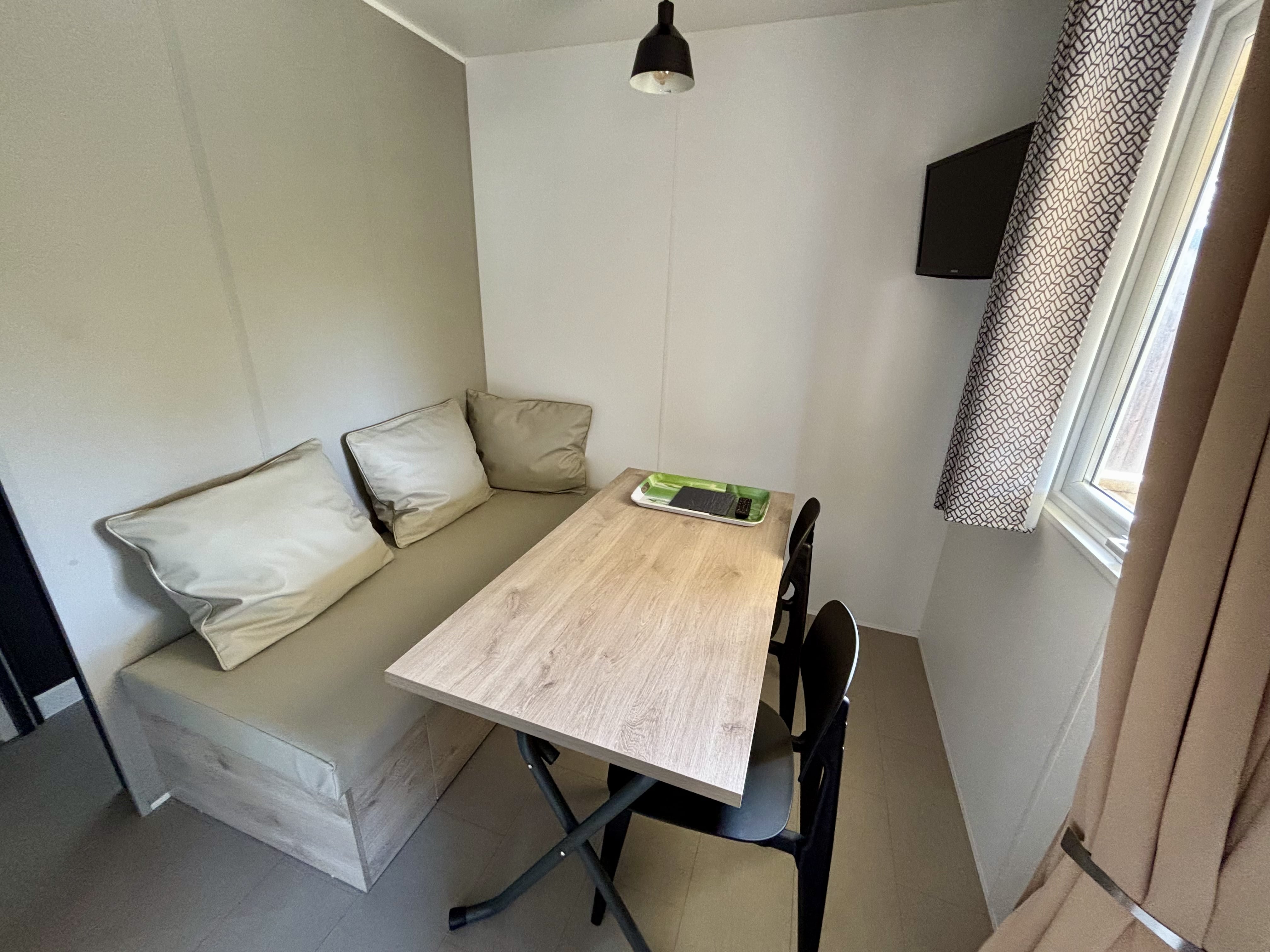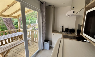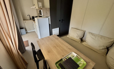 Lits faits à votre arrivée dans l'hébergement, ménage de fin de séjour pris en charge par le camping, linge de maison fourni, location d'équipements...