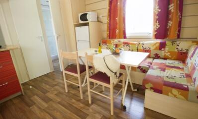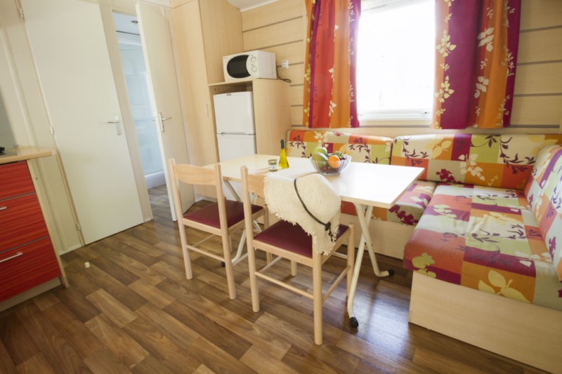 Lits faits à votre arrivée dans l'hébergement, ménage de fin de séjour pris en charge par le camping, linge de maison fourni, location d'équipements...