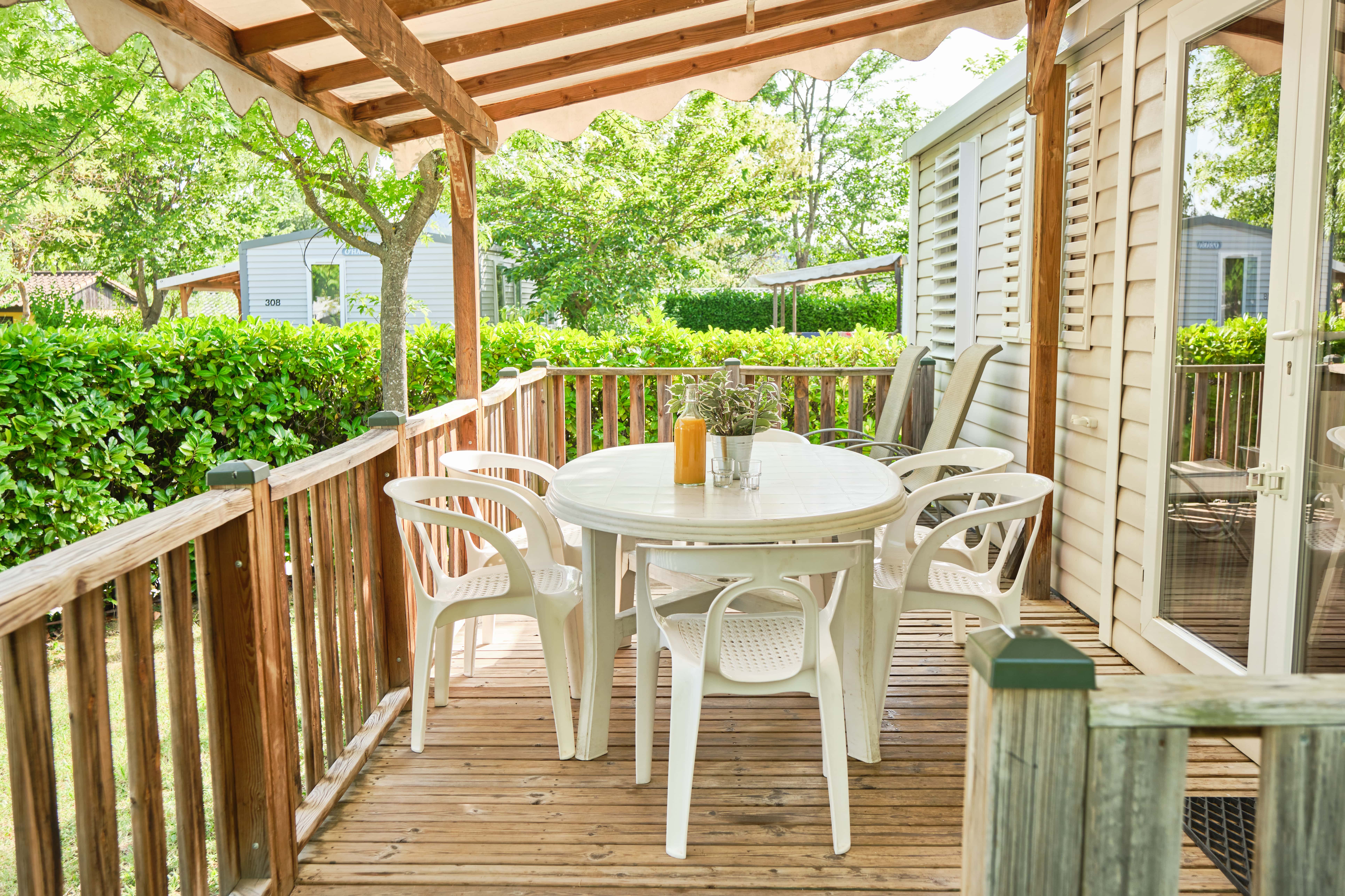 Lits faits à votre arrivée dans l'hébergement, ménage de fin de séjour pris en charge par le camping, linge de maison fourni, location d'équipements...