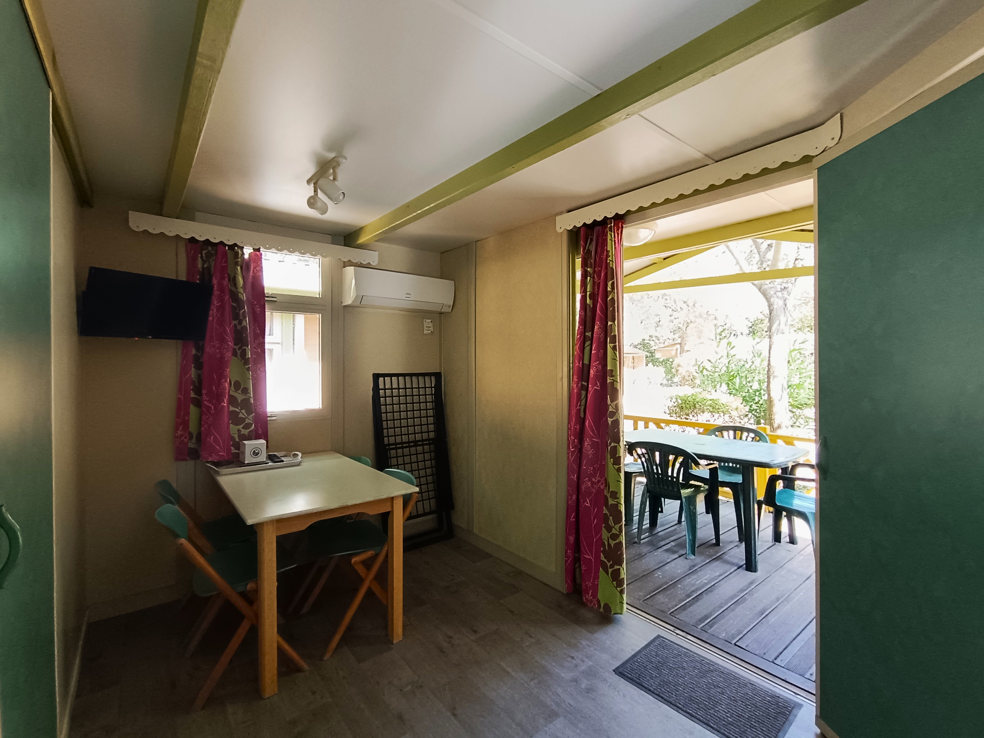 Lits faits à votre arrivée dans l'hébergement, ménage de fin de séjour pris en charge par le camping, linge de maison fourni, location d'équipements...