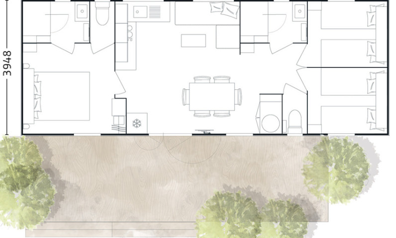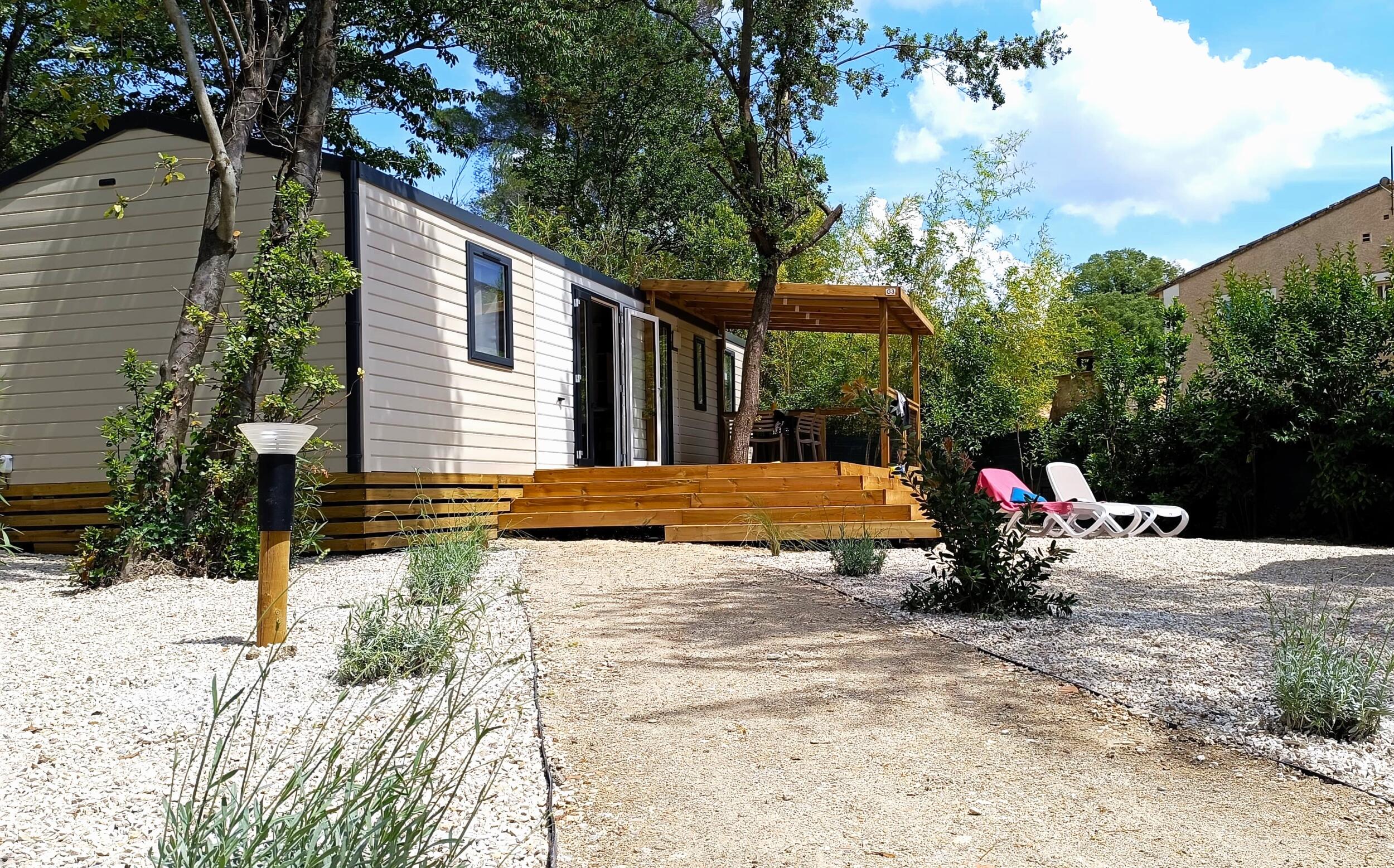 Lits faits à votre arrivée dans l'hébergement, ménage de fin de séjour pris en charge par le camping, linge de maison fourni, location d'équipements...