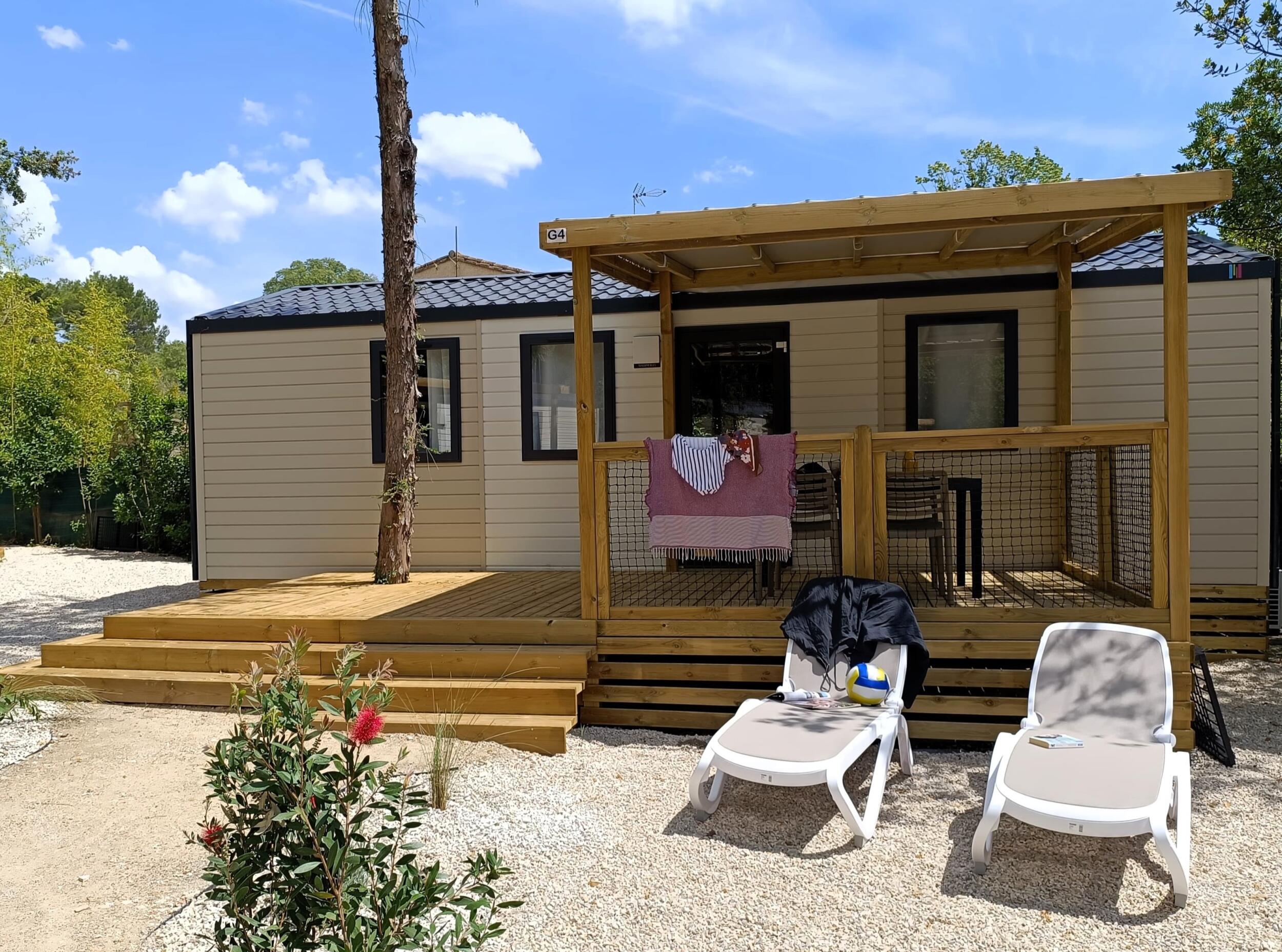 Lits faits à votre arrivée dans l'hébergement, ménage de fin de séjour pris en charge par le camping, linge de maison fourni, location d'équipements...